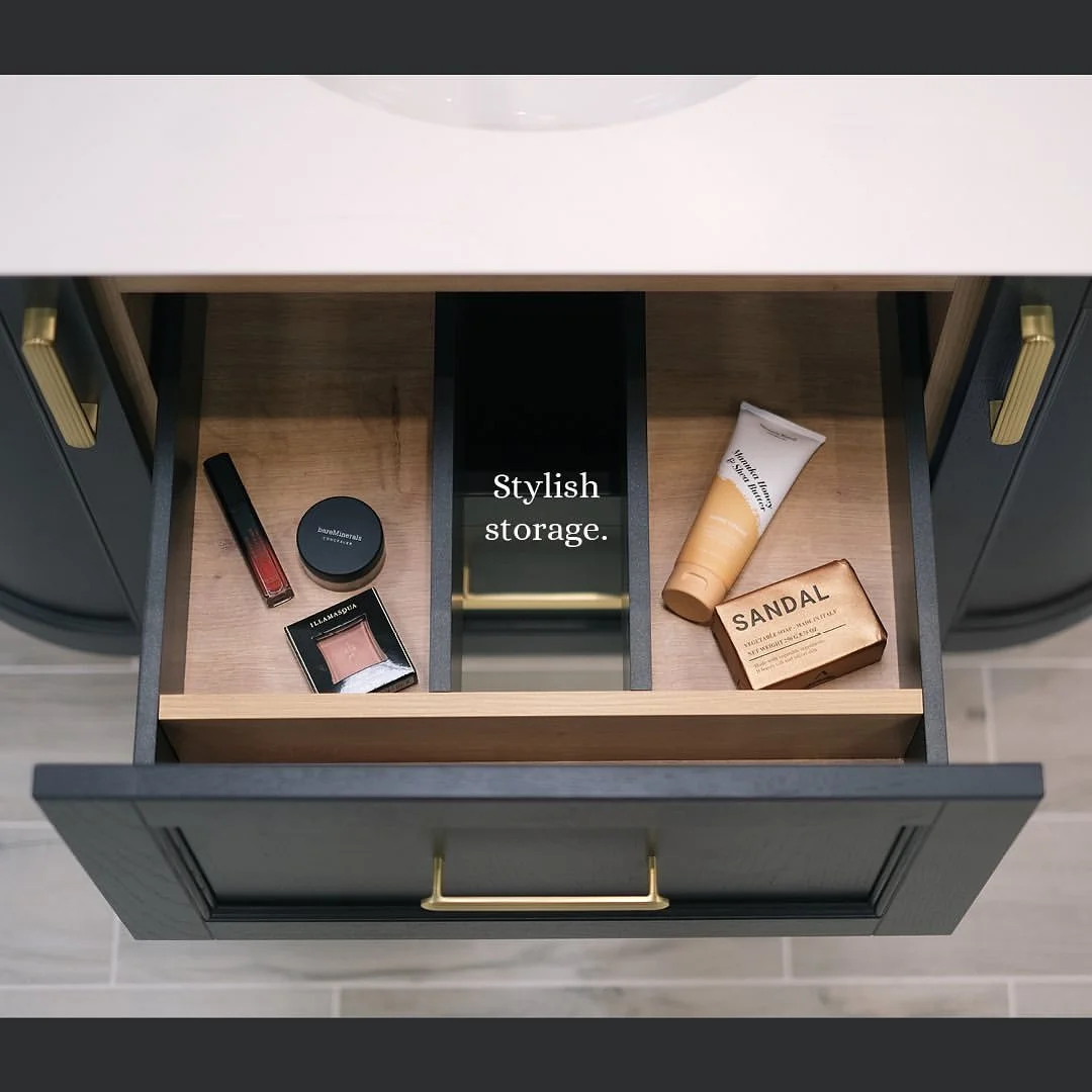 Bring the luxury of the Mediterranean coast to your home with the @burlingtonbathroom Riviera 580mm Vanity & Square Basin. This stunning ex-display model blends iconic Art Deco styling with modern functionality